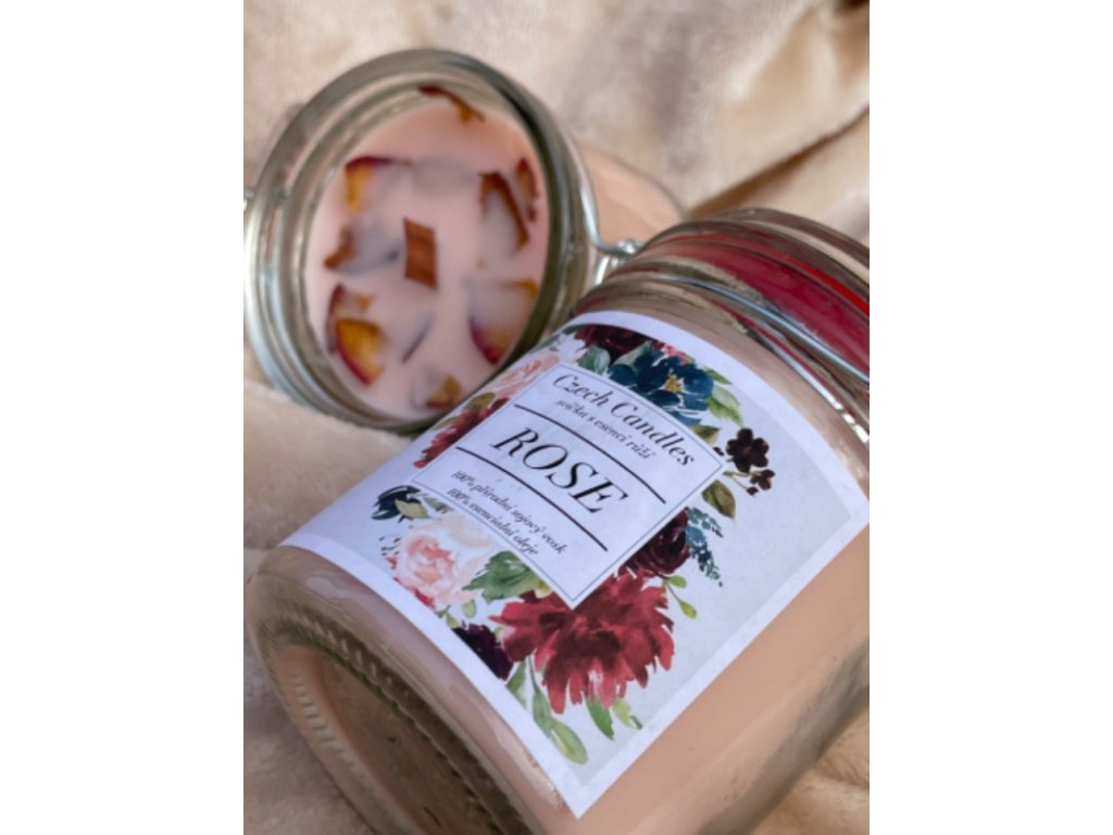 Svíčka s esencí růží vyrobená 100% ze sojového vosku s dřevěným knotem, který při hoření jemně praská, což vytváří relaxační atmosféru.